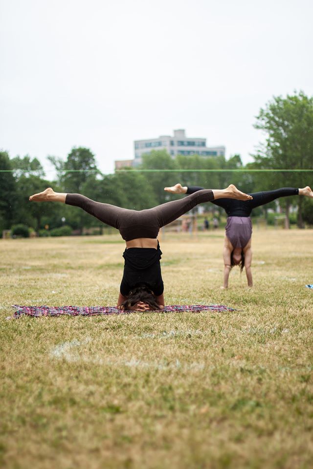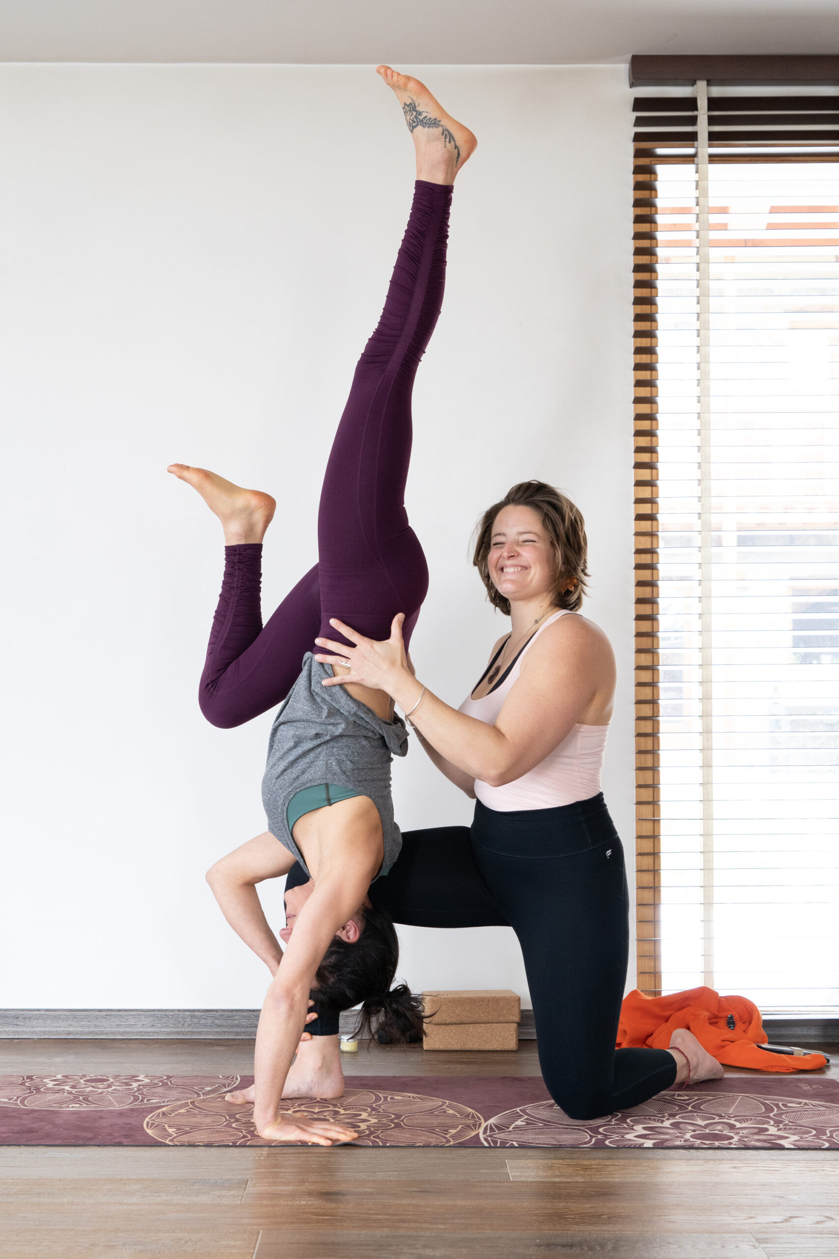 Toutes dans le cours intitulé INVERSIONS ! Sirsasana (tête), Pincha (avant-bras), Handstand, et variations fun la tête en bas.